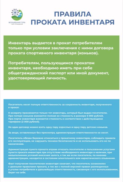 Для удобства гостей работает прокат коньков, а для тех, кто только учится кататься, доступна аренда «помощника фигуриста» – специального опорного устройства, которое поможет уверенно держаться на льду.